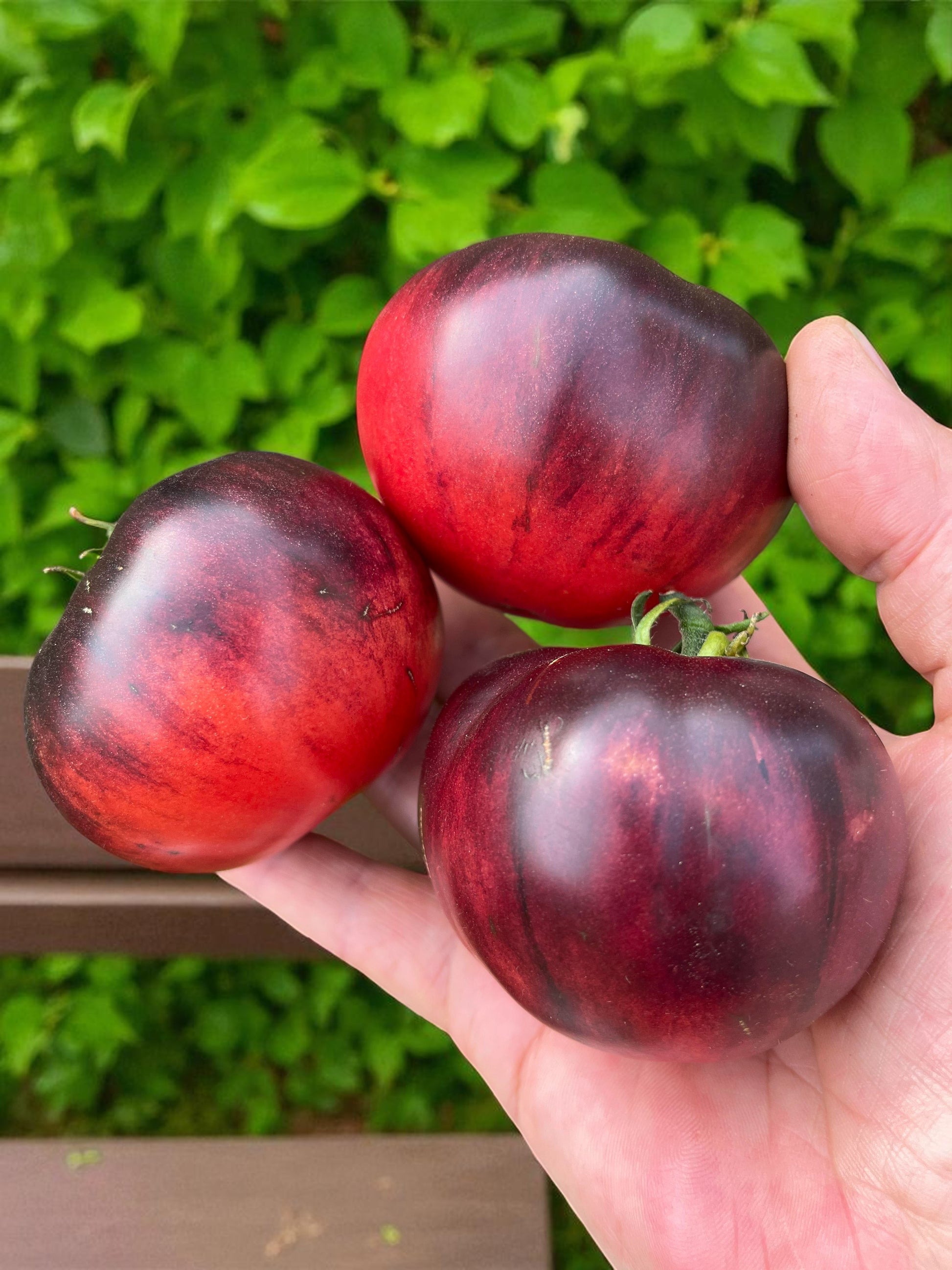 Ajoutez un chef-d'œuvre aux couleurs éclatantes à votre jardin avec la tomate Amethyst Jewel , une variété ancienne réputée pour sa peau d'un violet profond, son persillage remarquable et sa saveur riche et complexe. Sa couleur intense et son goût sucré et fruité la rendent aussi agréable à déguster qu'à cultiver.