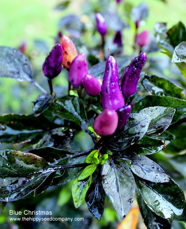 Un véritable coup de cœur pour les fêtes 🎄💙 ! Le piment bleu de Noël (souvent appelé « Blue Xmas ») est l'un des piments les plus ornementaux que vous puissiez cultiver. Il produit des grappes de piments brillants et dressés dont la couleur passe du violet profond 💜 au bleu-noir intense 🖤 au rouge vif ❤️ à mesure qu'ils mûrissent. Ses plantes compactes et touffues regorgent de gousses, ce qui les rend aussi à leur place dans un pot décoratif que dans un jardin gourmand.