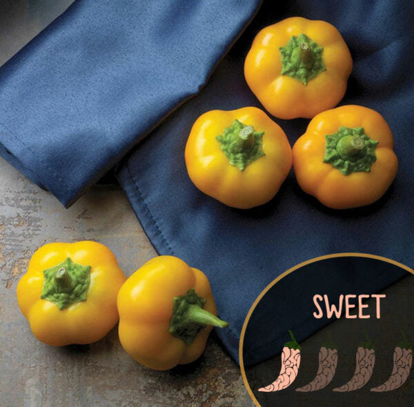 Dodu, côtelé et incroyablement polyvalent, le poivron hongrois ressemble à une mini meule de fromage 🧀 et se déguste comme un poivron doux de qualité supérieure. Ses parois épaisses et juteuses et son croquant en font un produit incontournable à rôtir, à farcir ou à grignoter cru. Ses fruits mûrissent d'une couleur ivoire crémeuse 🤍 ➜ orange soleil couchant 🧡 ➜ rouge profond ❤️, pour une dégustation réussie à chaque étape.