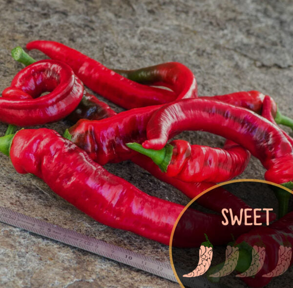 Le Le piment doux italien Jimmy Nardello est un poivron ancien très prisé, apprécié pour sa douceur fruitée exceptionnelle et son goût de bonbon. Originaire du sud de l'Italie, il a été introduit aux États-Unis en 1887 par Giuseppe et Angella Nardello et porte le nom de leur fils, Jimmy, qui a préservé la variété.