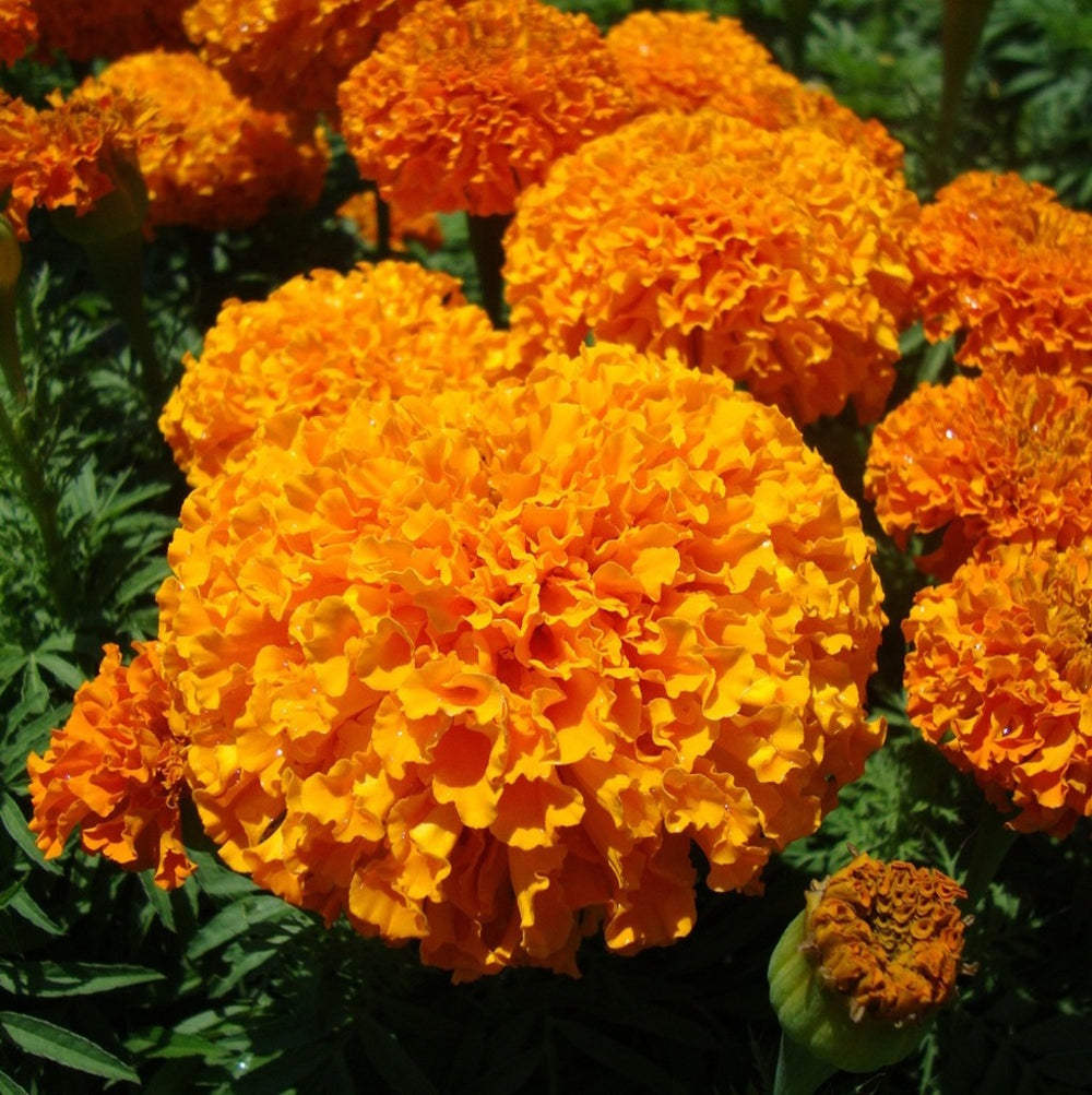 Géant parmi les soucis 🌿🌞, le souci africain orange produit d'audacieuses fleurs globulaires d'un orange flamboyant 🧡🔥. Dominant la plupart des variétés, cette variété ancienne, favorite, atteint une hauteur impressionnante et offre des pétales comestibles utilisés depuis longtemps dans la cuisine internationale comme colorant et aromatisant . Surnommé le « safran du pauvre » dans certaines régions d'Asie et d'Amérique latine, ses pétales apportent des tons dorés et un doux goût d'agrumes poivrés aux plats, thés et huiles. Ornementale, comestible et répulsive 🌱🐜, c'est une plante puissante pour les jardins comme pour la cuisine.