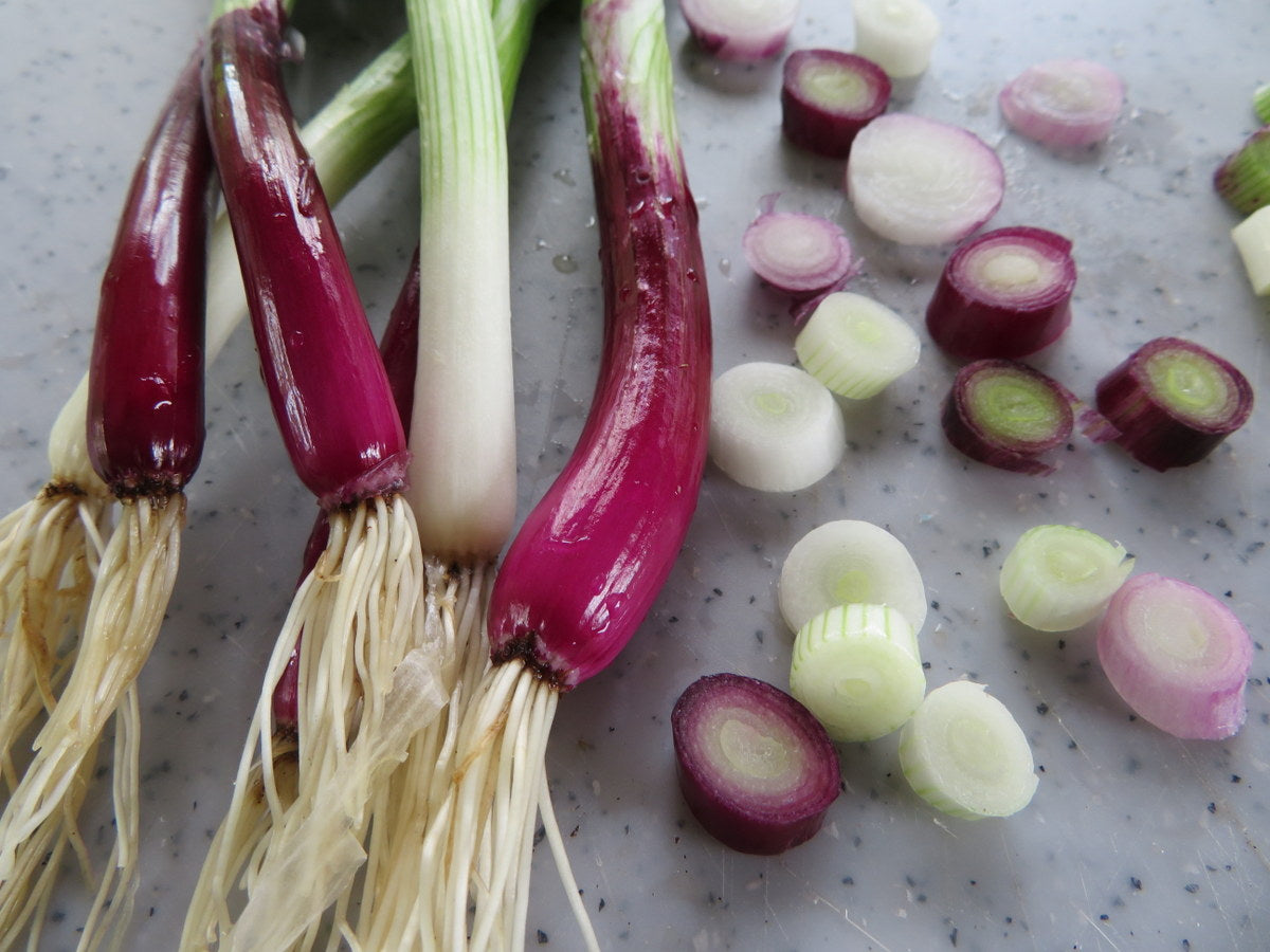 Variété vibrante d'oignons verts 🌱✨, les oignons rouges poussent en touffes de tiges fines aux bases rouge vif à violet ❤️💜 qui se fondent en fanes d'un vert vif. Contrairement aux oignons bulbes, ce sont des vivaces à couper et à repousser, produisant des tiges tendres au goût doux et sucré d'oignon. Rustiques, résistants au froid ❄️💪 et à croissance rapide, ils sont parfaits pour des récoltes d'oignons verts gourmands toute l'année.