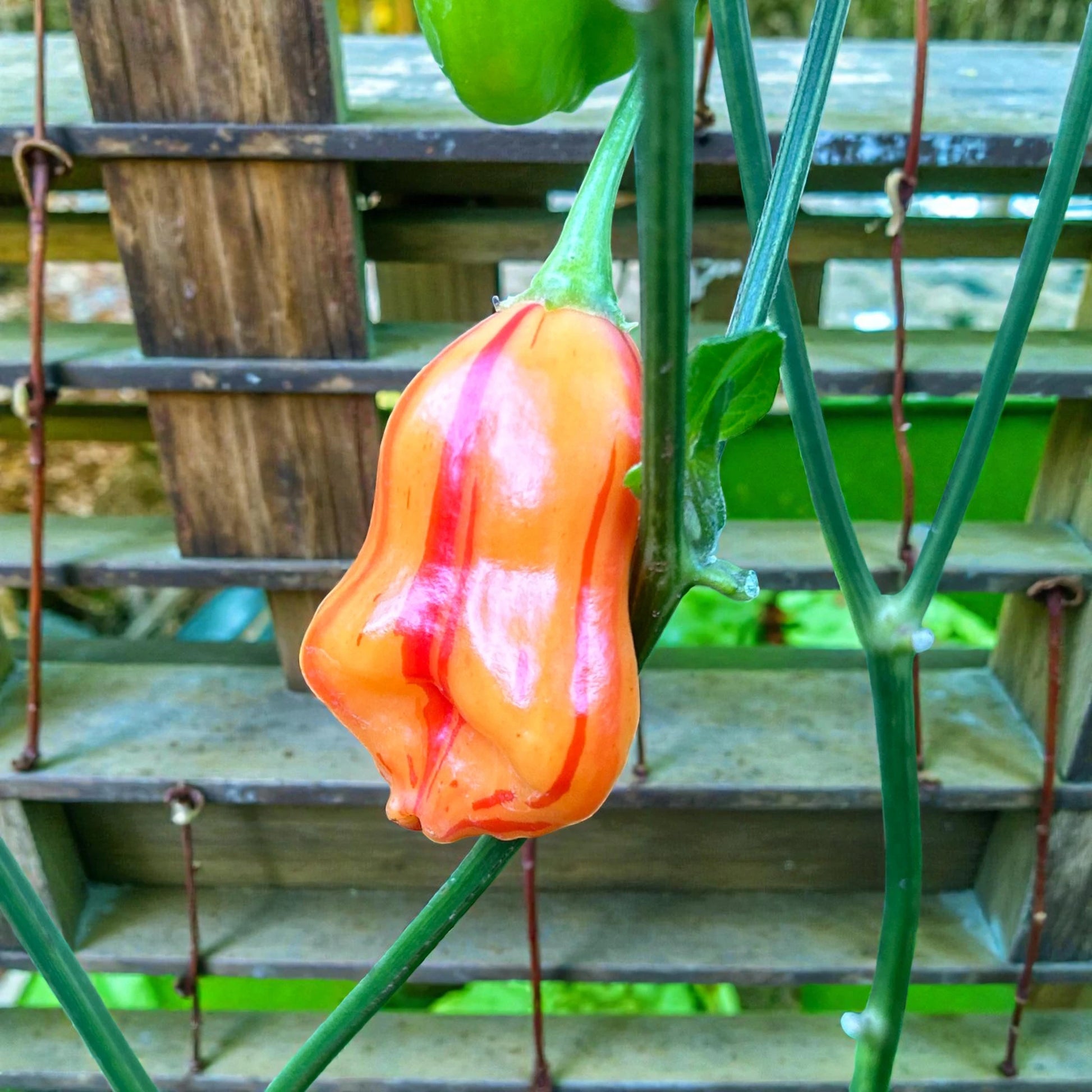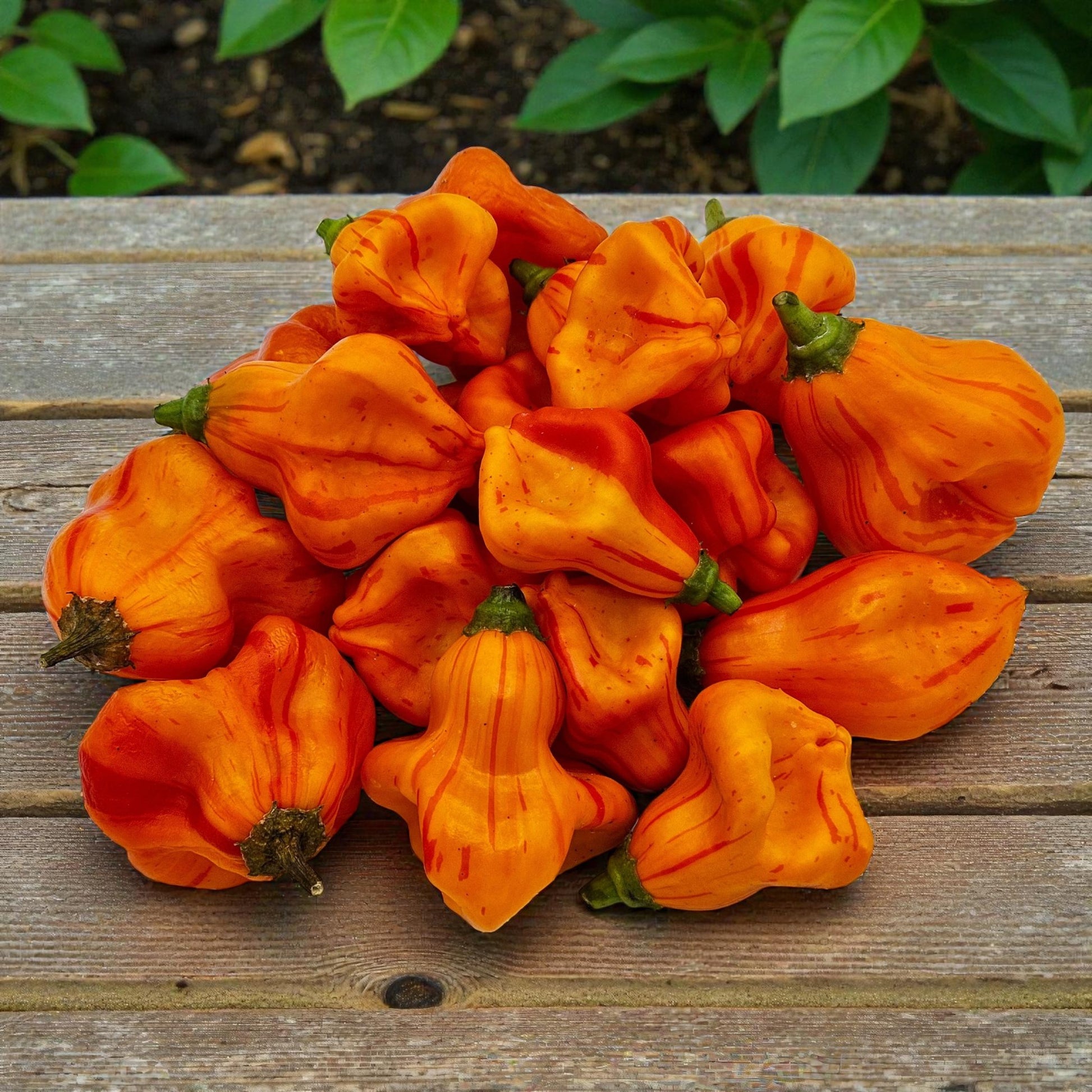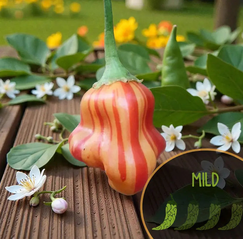 Un phénomène visuel et gustatif 🦓🍊 Le poivron Zebrange est un véritable spectacle dans tous les jardins. Issu d'un croisement unique entre l' Aji Fantasy et le Christmas Bell (Capsicum baccatum), ce poivron produit de magnifiques fruits en forme d'étoile. À maturité, ils se parent de superbes rayures verticales orange et rouges, d'où leur surnom de « Zebra ». Outre son esthétique, ce plant est très productif et croule souvent sous ces joyaux exotiques et multicolores.