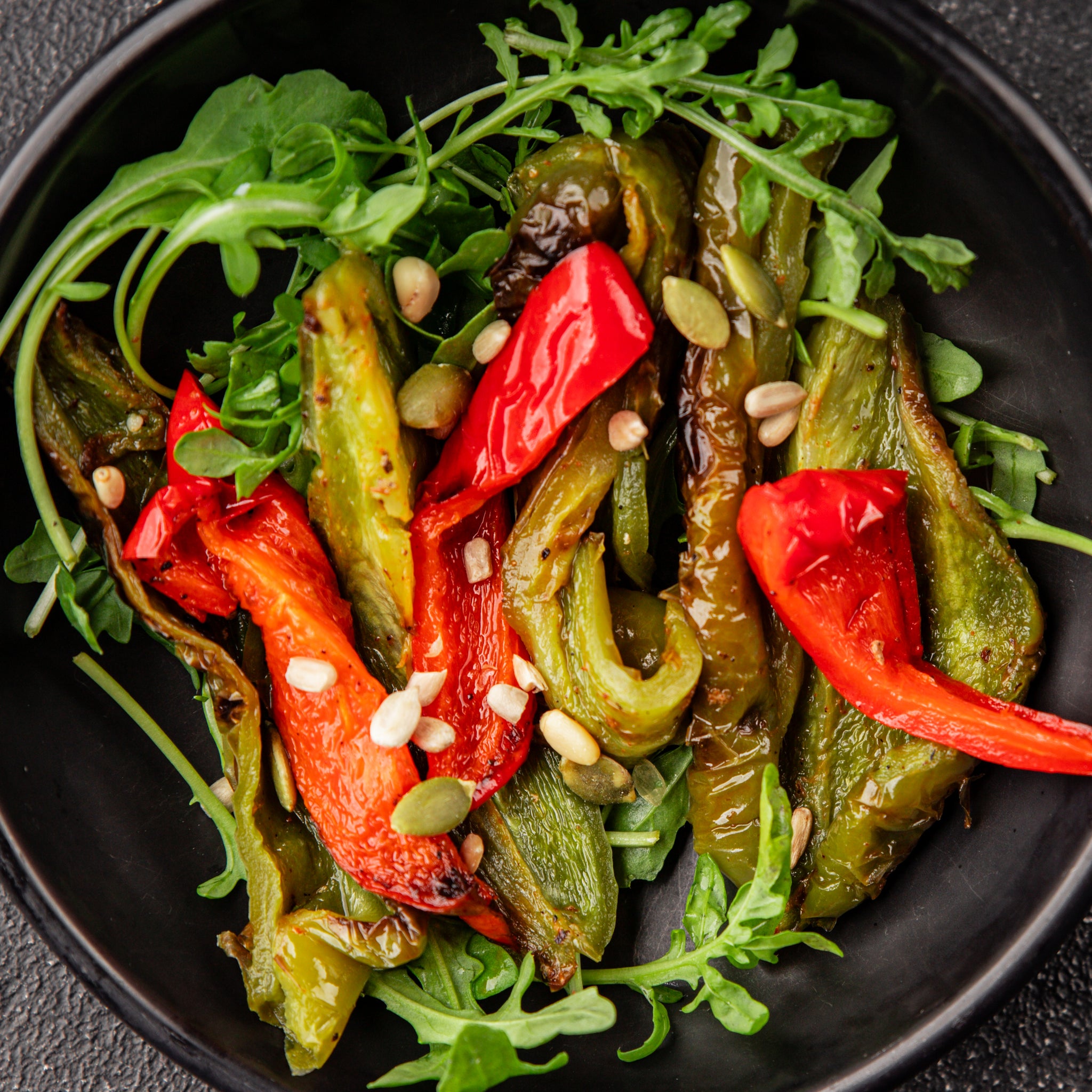 - Blistered and fried: The most traditional method involves pan-frying the peppers in olive oil over high heat until the skin blisters and chars. The stems are left on for easy handling while eating.