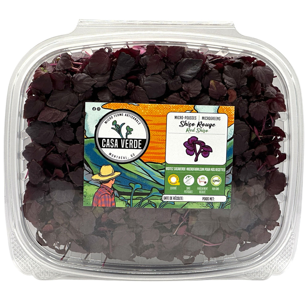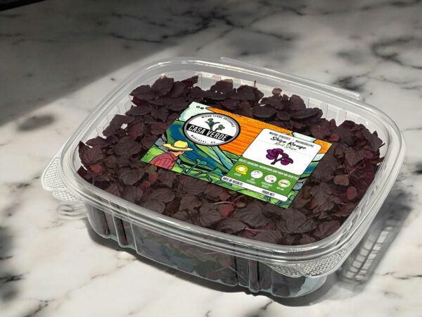 Red Shiso (Perilla frutescens) is a classic Japanese herb used in sashimi, pickling, beverages, and garnish work. At Casa Verde Microfarm, we cultivate Red Shiso microgreens slowly to intensify their essential oils, deepen their purple pigmentation, and preserve delicate leaf structure.
