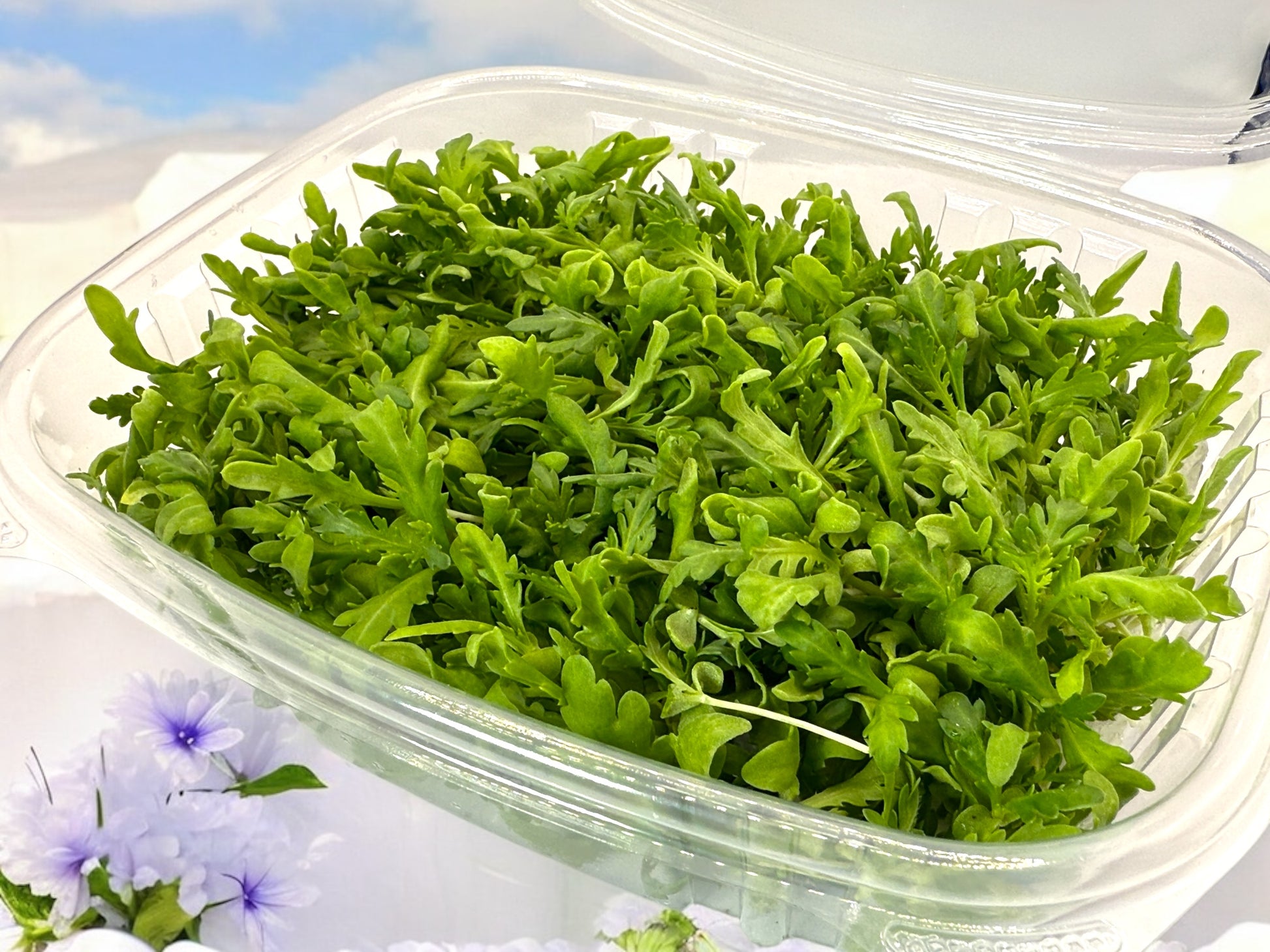 Shungiku — also known as chrysanthemum greens or tong ho — is a staple in Asian cuisine, prized for its complex herbal flavor that balances floral, savory, and a subtle touch of bitterness. As microgreens, the leaves are delicate and aromatic, making them a favorite for chefs who want to elevate presentation and flavor in one move.