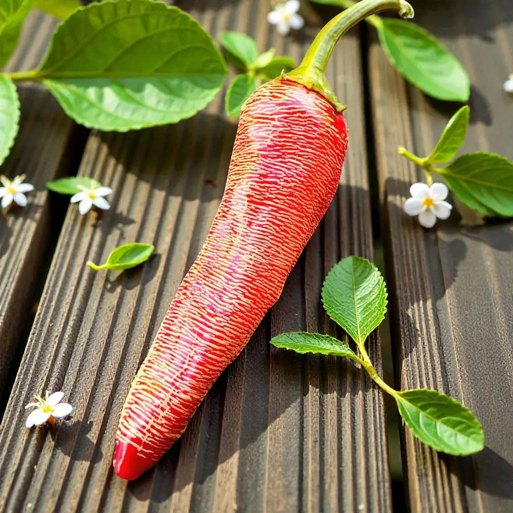Vezenka Pepper is a highly productive variety with deep green foliage and rugged, corked red fruits. Originally from Eastern Europe, this pepper’s rough exterior and crisp, bold flavor make it a standout in the garden. It produces high yields throughout the season, and its firm flesh is ideal for roasting, sauces, or adding texture to fresh dishes. Perfect for growers looking for a hardy, unique variety with cultural heritage and culinary versatility.