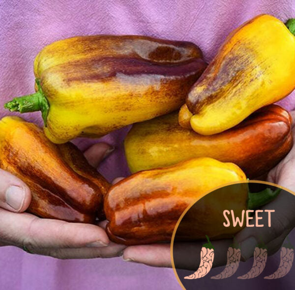 Aces & 8’s Pepper Seeds (Sweet Variegated) The Stunning, Zero-Heat Gourmet Poblano Quick Facts: Heat:...